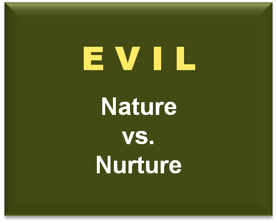 The core to these questions, and the answers, has to deal with the subject of evil, its existence, manifestation and solution. As part of the longstanding debate a corollary question is this: Is evil in our human nature or is it developed, even nurtured?