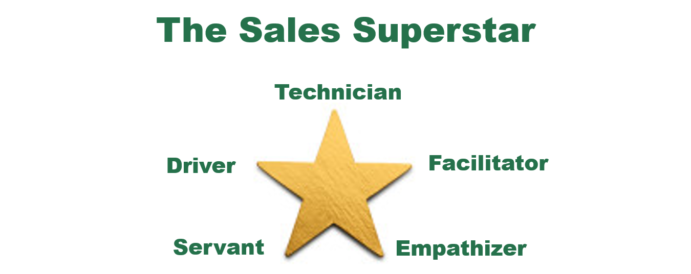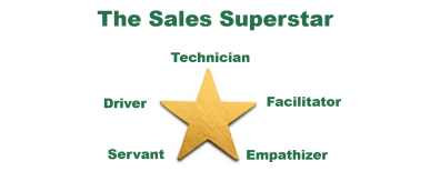 As shown below in the diagram from my book, the attributes and make-up of a sales superstar are indeed like the 5 balanced points on a star. While these gifts and characteristics may come naturally to some, they can be developed and fine-tuned. But balance is the key. If any one point is extended or over-exaggerated, then the star is off-balance. An effective salesperson is strong and equally weighted on all superstar points.